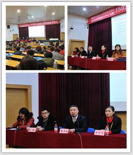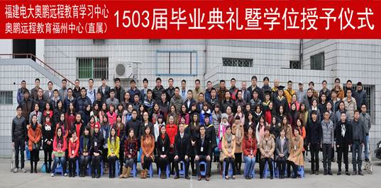 2015年2月1日上午,福建电大奥鹏远程教育学习中心暨奥鹏远程教育福州直属学习中心在福建广播电视大学电教楼阶梯教室隆重举行2015年春季第一批毕业生毕业典礼及学位授予仪式。福建电大远程教育中心领导出席了毕业典礼,学习中心各部门负责人、班主任、150多名毕业生代表参加了典礼。本次毕业典礼涉及高校为:东北财经大学、电子科技大学、福建师范大学、大连理工大学、东北大学、吉林大学等6所,合计毕业人数839人 。