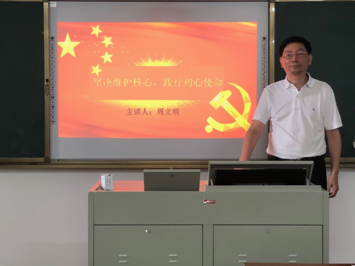 2019年6月20日下午,学院党支部组织全体党员在左海校区育英楼教室开展“坚决维护核心,践行初心使命”主题党日活动,学院党支部书记周文明以《坚决维护核心,践行初心使命》为题给学院全体人员上主题党课。学院全体非党同志列席参加主题党日活动。