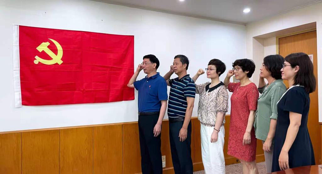 在党的百年华诞之际,支部书记带领全院党员同志面向鲜红的党旗,重温入党誓词,用铮铮誓言坚定理想信念,在叩问初心中,牢记历史使命,并以此告诫全院党员同志,组织上入党,是一生一次;思想上入党,要一生一世。