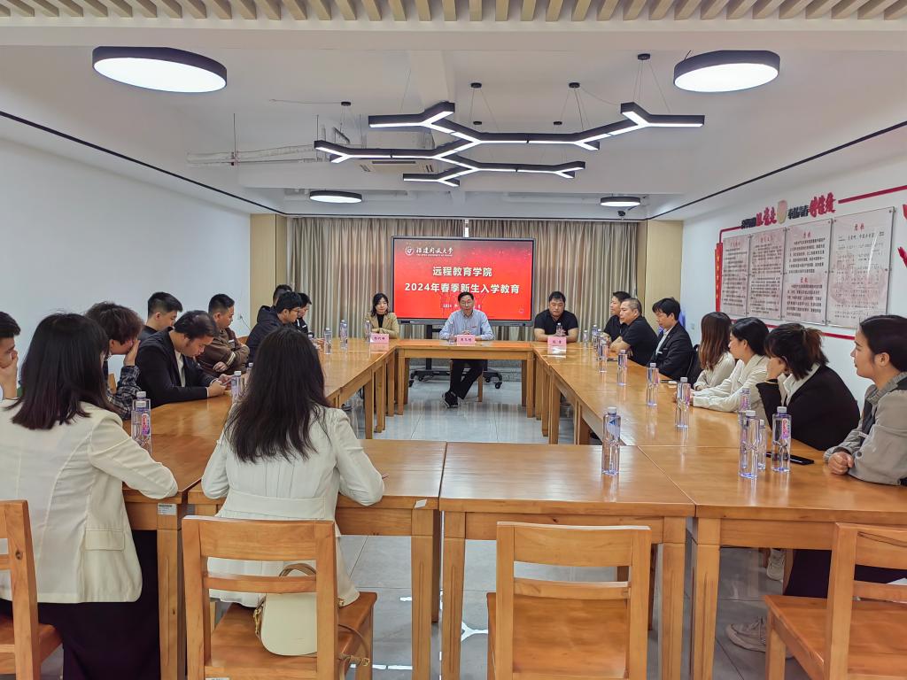 4月13日上午,远程教育学院组织新生代表参加学校举办的2024年春季新生开学典礼暨同上“开学第一课”,典礼在庄严的国歌中拉开序幕。