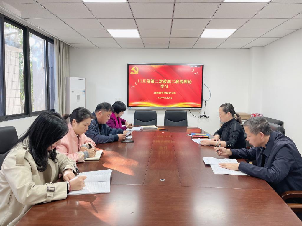 11月26日下午,远程教育学院党支部围绕11月重点工作安排及第二次教职工政治理论学习内容,以“对标对表抓好学习贯彻习近平总书记在福建考察时的重要讲话精神的深化细化具体化”为主题开展支部党日活动。