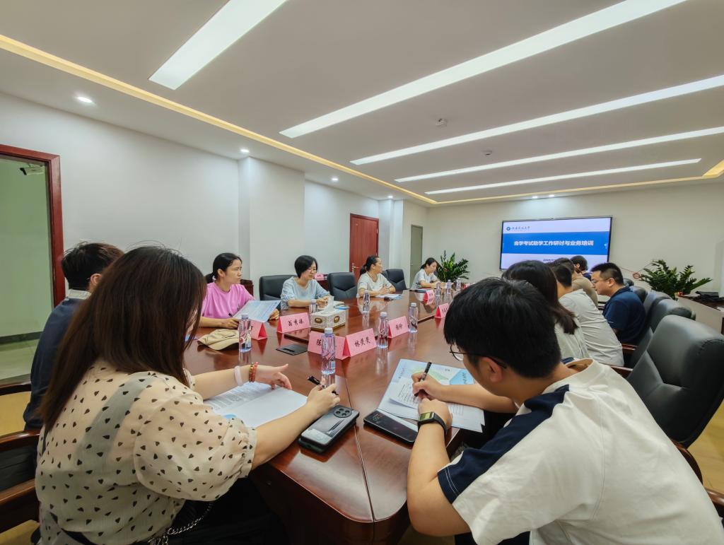 为深化自学考试助学工作,提升服务效能,远程教育学院于6月25日上午在左海校区组织召开2025年自学考试助学工作研讨与业务培训。培训由院长谢程燕主持,学院相关科室人员、助学服务中心老师共计14人参训。