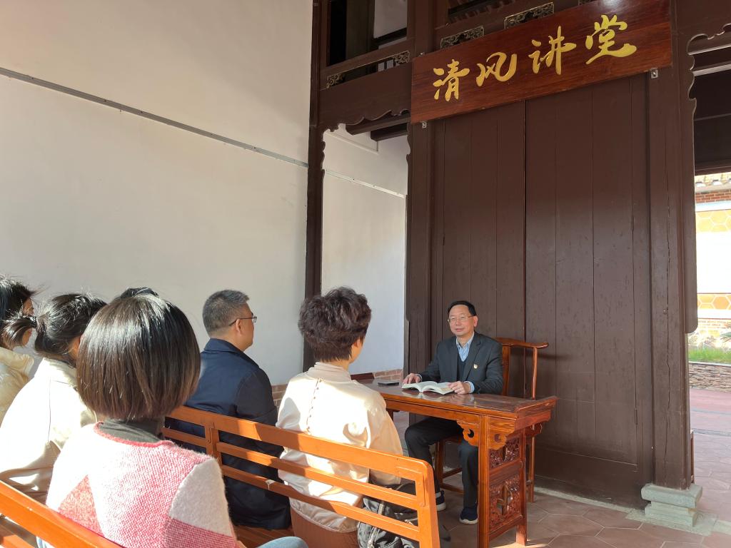 随后,支部书记周文明在东大村清风讲堂向大家介绍“四下基层”的形成背景、重要意义、精神实质和实践要求。他提出,学院党员干部要充分用好“四下基层”这个重要抓手,牢记嘱托,凝心聚力,以饱满的政治热情和扎实的工作作风,为学校高质量发展注入更加强劲的动力;要传承和践行优秀家风家训,涵育爱党爱国的赤子情怀以及清正廉洁的优良作风。