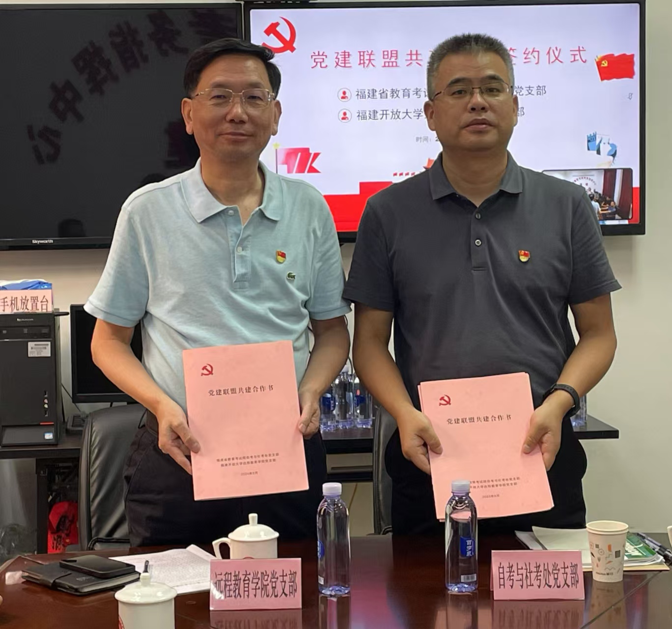 9月11日,远程教育学院党支部与福建省教育考试院自考与社考处党支部开展共建活动暨“学思践悟新思想,砥砺奋进新征程”支部党日活动,续签党建联盟共建合作书,双方党员以交流座谈的形式开展活动。