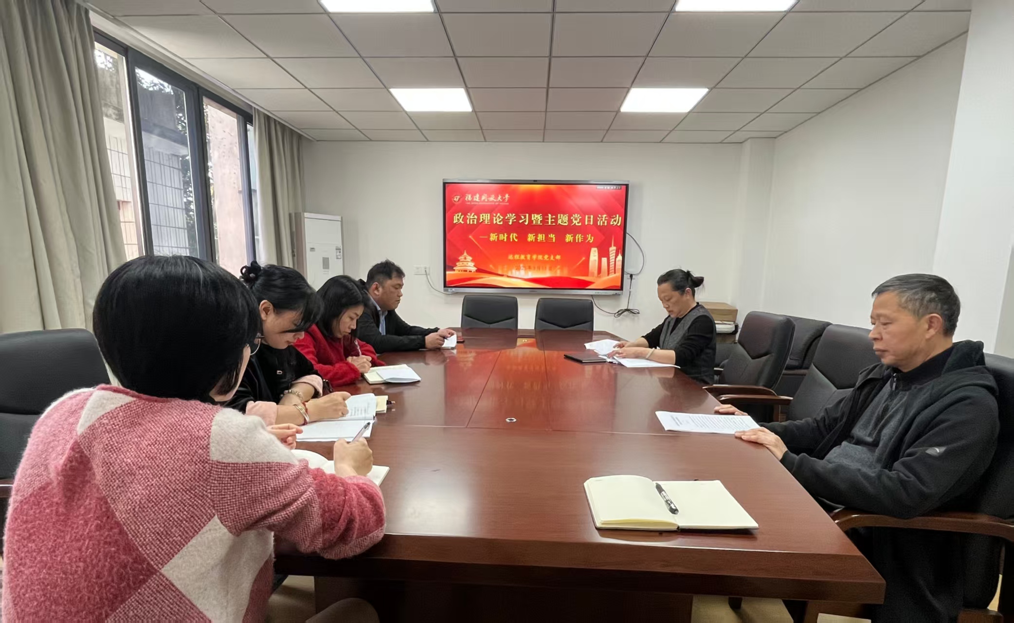 3月11日,远程教育学院党支部开展3月第一次政治理论学习暨“新时代、新担当、新作为”主题党日活动,本次活动由党支部书记谢程燕主持,学院全体教职工参加。