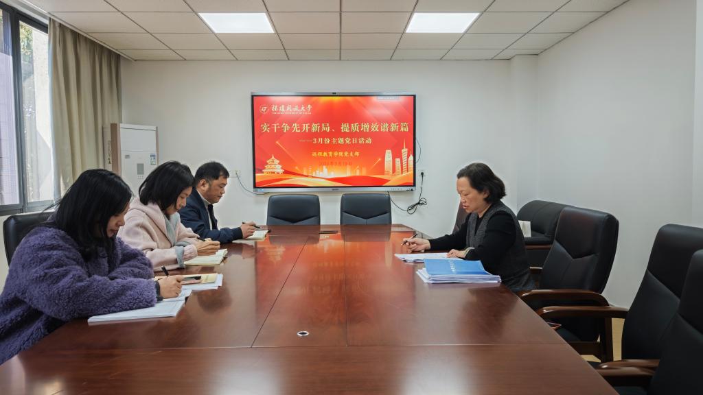 3月13日上午,远程教育学院党支部召开党员大会暨3月主题党日活动,启动部署开展树立和践行正确政绩观学习教育。党支部书记谢程燕主持活动,学院全体党员参加。